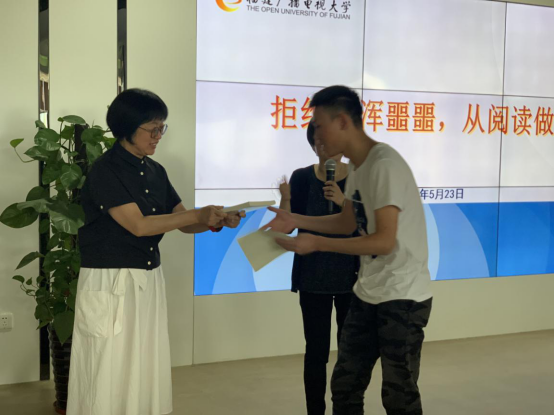 随后,资源中心徐敏主任与职业学院汪媚科长为2017-2018年度获得“阅读之星”、“英语学习之星”的同学颁发奖状、奖品,并祝愿他们再接再厉,继续做一个快乐的读书人。学生代表洪嘉宝、洪尚凤等6位同学现场与同学们分享自己的学习体会。