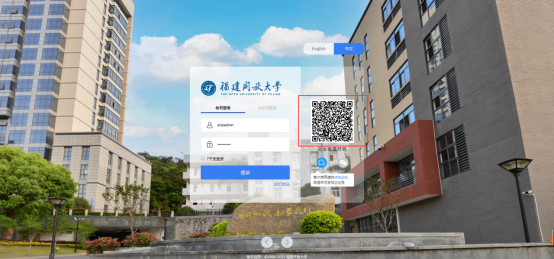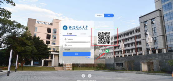 1、 打开浏览器,访问智慧校园平台,地址为 https://i.fjou.edu.cn,首次使用,需要在登录界面中,点击二维码下方的“点击此处”按钮,进行微信扫码。