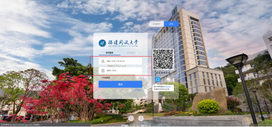 1、 打开浏览器,访问智慧校园平台,地址为 https://i.fjou.edu.cn,使用智慧校园平台统一身份认证系统的账号密码登录。