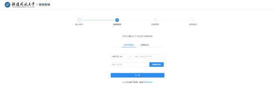 3、 输入您的绑定的手机号,点击获取验证码后,输入您收到的6位数的验证码,并点击下一步。