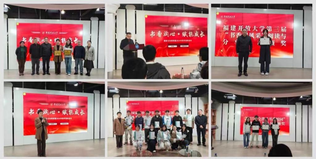 活动由黄国文馆长主持。他详细介绍了本次颁奖仪式涵盖的三大核心活动——2025年全省 “书香校园” 立体阅读书评大赛、国家开放大学第三届“书香展风采”阅读与分享活动及我校“书香展风采”阅读与分享活动获奖情况。